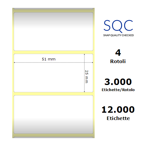 Etichette SQC S-HARD-ST - Etichette sintetiche per la stampa in trasferimento termico compatibili con modelli di stampanti Industriali/Business.